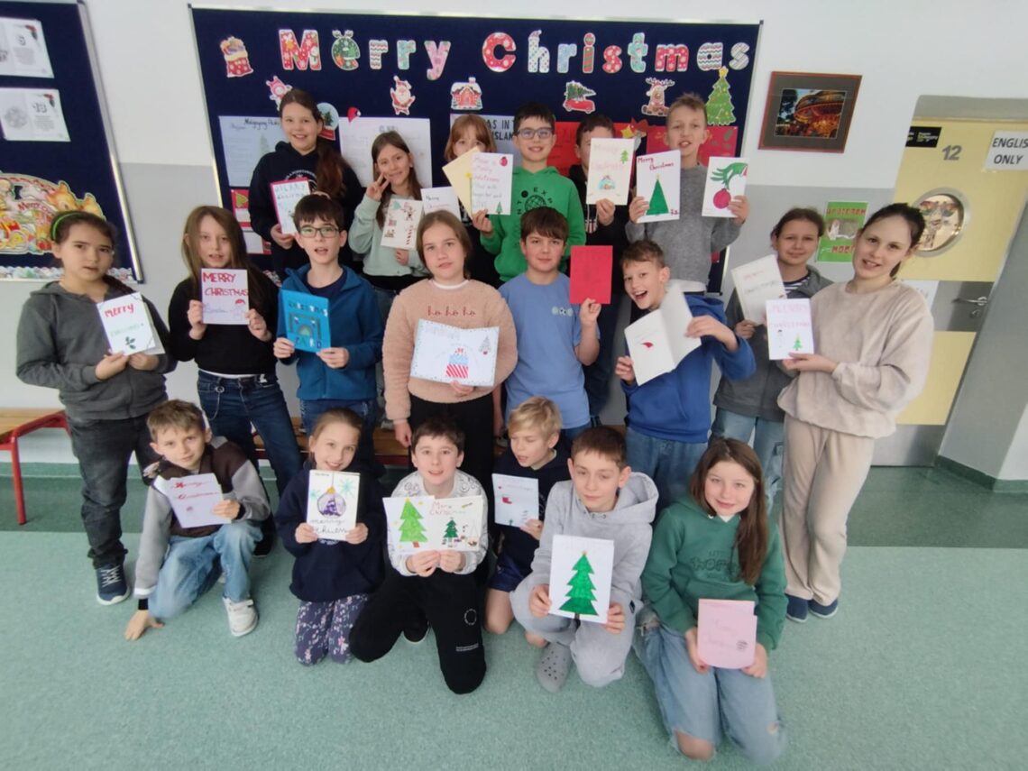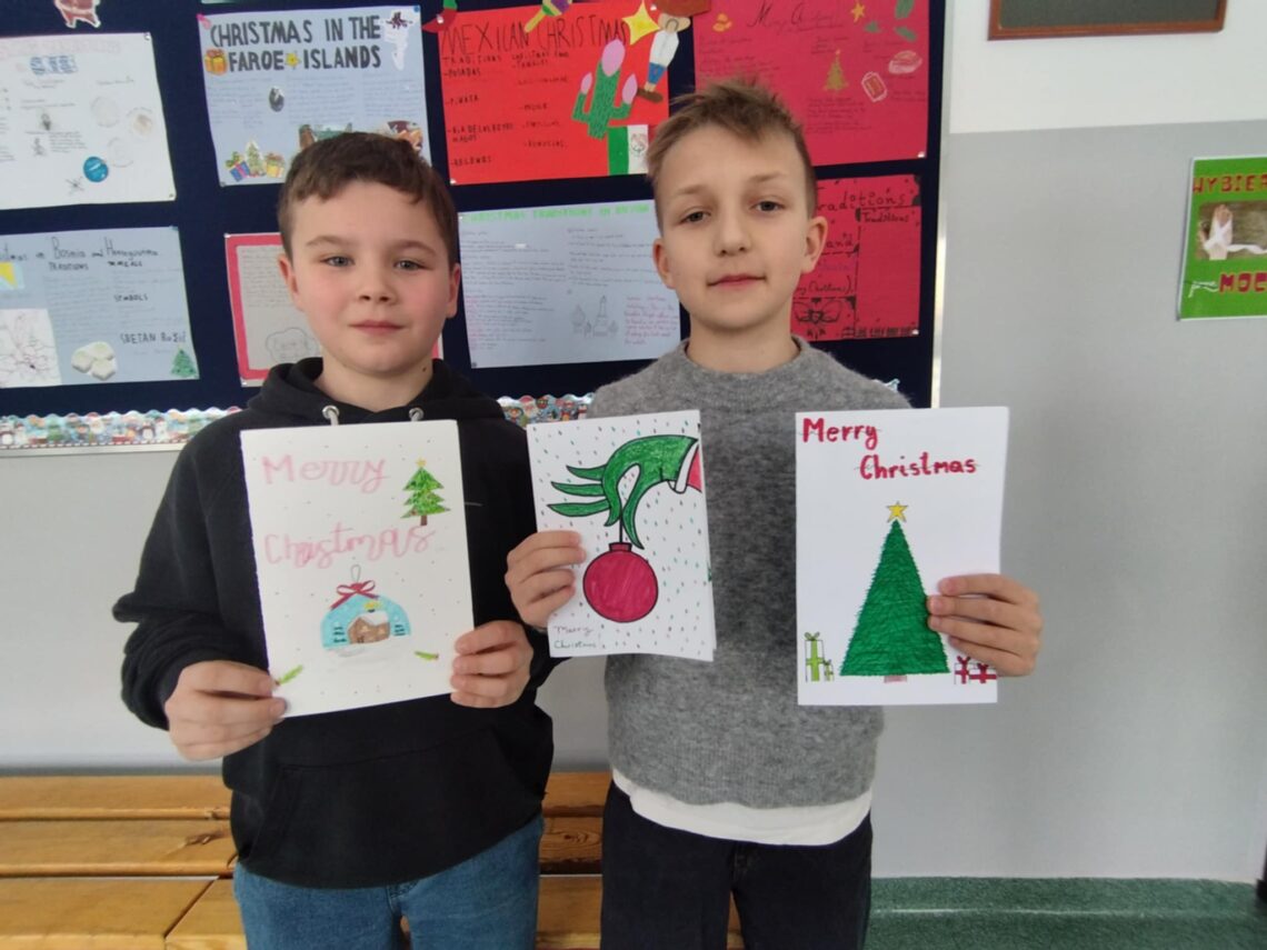 Christmas is all around US – eTwinning w naszej szkole! Uczniowie klas 4a i 5b wzięli udział w międzynarodowym projekcie eTwinning „Christmas is all around US”, realizowanym we współpracy ze szkołami z Rumunii, Polski, Czech i Hiszpanii. W ramach projektu nasi uczniowie własnoręcznie przygotowali kartki świąteczne, które następnie zostały wysłane do szkoły partnerskiej w Maladze. Była to nie tylko piękna świąteczna inicjatywa, ale przede wszystkim wartościowe doświadczenie edukacyjne. Takie działania doskonale wpisują się w standardy Erasmusa, promując:otwartość na inne kultury,