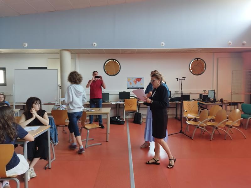 Ostatni dzień mobilności poświęcony był pracy twórczej – uczniowie kontynuowali projekt wspólnej piosenki o wodzie, rozpoczęty podczas wizyty we wrześniu w Konstancinie-Jeziornie. Efektem była wspólna kompozycja i nagranie piosenki, a zwieńczeniem – wręczenie dyplomów uczestnictwa przez dyrekcję szkoły partnerskiej.