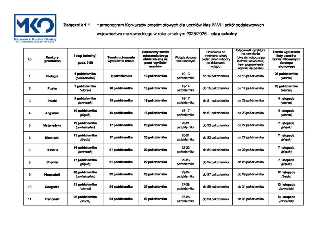 Konkursy organizowane przez Mazowieckiego Kuratora Oświaty w roku szkolnym 2025/2026.