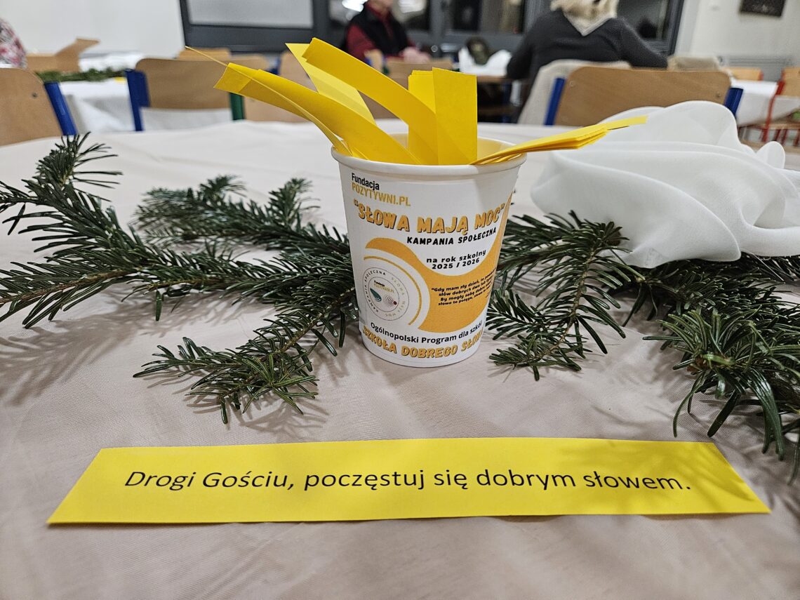 Grudniowe działania realizowane w ramach programu „Szkoła Dobrego Słowa – Słowa mają moc” objęły znaczną część społeczności szkolnej. Podczas kiermaszu świątecznego rodzice, uczniowie, nauczyciele i goście siadając w szkolnej kawiarence mogli nie tylko skosztować pysznych ciast ale także mogli „poczęstować” się dobrym słowem.